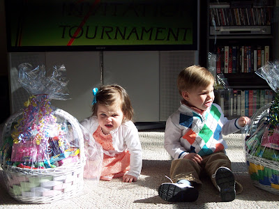 On Easter Sunday we went out to Brunch with Dan's mom, T.J and Marianne. Dan's brother and his wife. The kids loved it and filled up on scrambled eggs. Then we came home to take a nap and hunt for the easter baskets the Easter bunny left